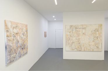 Madelyn Kellum’s painting practice resembles as much the entrenched silhouettes of early 20th century symbolists as the glossy veneers of American pop-cultural iconography; an amalgam that results in compositions that are both visually arresting and thoughtfully detailed. Named for the 2014 saccharine pop-hit by One Direction, Kellum infuses carefree paparazzi photos of celebrity culture with haunting displays of war-era artillery and devastation. The song itself, despite mainstream appeal, also references the grandeur of sentimental moments within the larger context of global disorder, and the often catastrophic accumulation of time, an inspiration for Kellum that amounts to monumental compositions sometimes at historical scale. The band’s leading man himself, Harry Styles, played a death-defying British soldier in the blockbuster film Dunkirk, one of many casting decisions that glamorized the allied war effort and the ensuing global dominance of western media culture. In Kellum’s paintings the lines between reality and fiction are equally difficult to distinguish. The artist book and lectern that anchors the exhibition similarly includes references to Justin Bieber’s Beauty and a Beat video, a feel-good anthem that shows Bieber celebrating amidst a choregraphed group of bikini-clad, party-goers reimagined as a whirlpool of lost souls in the mythical River Styx, simultaneously fossilizing the intimate experiences of consumer youth culture while casting a suspicious shadow on representations of perceived post-war American supremacy.