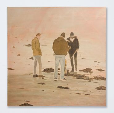 Based originally on images taken in New York City public spaces and her hometown Massachusetts coastline, Sarah Cohen employs a photographer’s lens to memorialize sentimental engagements with everyday life. Cohen’s subtle abstract inflections to these scenes from ordinary experience rely on patient, semi-transparent layering of highly considered color-combinations, often transforming quiet, bucolic imagery into austere sites of introspection. Cohen captures moments without intervening, creating settings that are paradoxically limitless in their implication and simultaneously relatable. Often precious or potentially morose, it’s never quite clear the intention of Cohen’s visual symbology, but the thoughtful, painterly interpretations to the original photograph elevates the magnitude of each scenario, allowing viewers to ponder the potential outcomes of these transient, but decidedly personal interactions.