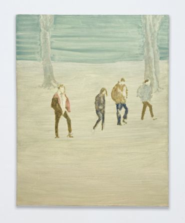 While an adept technical application distinguishes Cohen’s work from their familiar settings, the paintings are as much found as they are built, emphasizing the limitations of artistic authenticity, but also centralizing the act of noticing otherwise discarded or overlooked features of contemporaneity as an essential component of Cohen’s practice—an interest that places her work in dialogue with artists and thinkers that frame domestic life as the battleground of artistic innovation within systems of societal constraint. Immediately timeless and comforting, longer consideration of Cohen’s minor transformations to places of apparent contentment might imply a more nuanced representation of American life. It’s tempting to look upon these compositions with momentary satisfaction—the seaside towns synonymous with weekend getaways, long walks and winter picnics, the elongated moments of private reflection within sublime landscapes. Yet while Cohen’s paintings resonate through a sense of coloristic strategy and a nostalgic sensibility, ultimately her project asks viewers to appreciate features of daily life that might otherwise be overlooked—a pursuit that necessitates a departure from our typical path home.